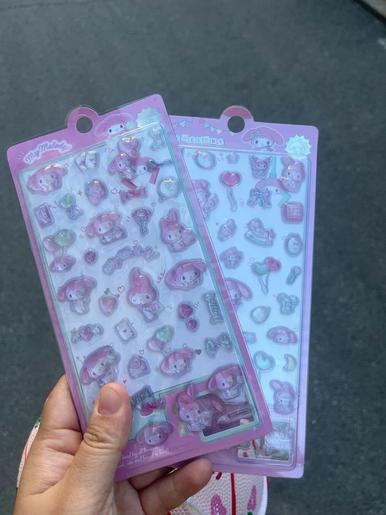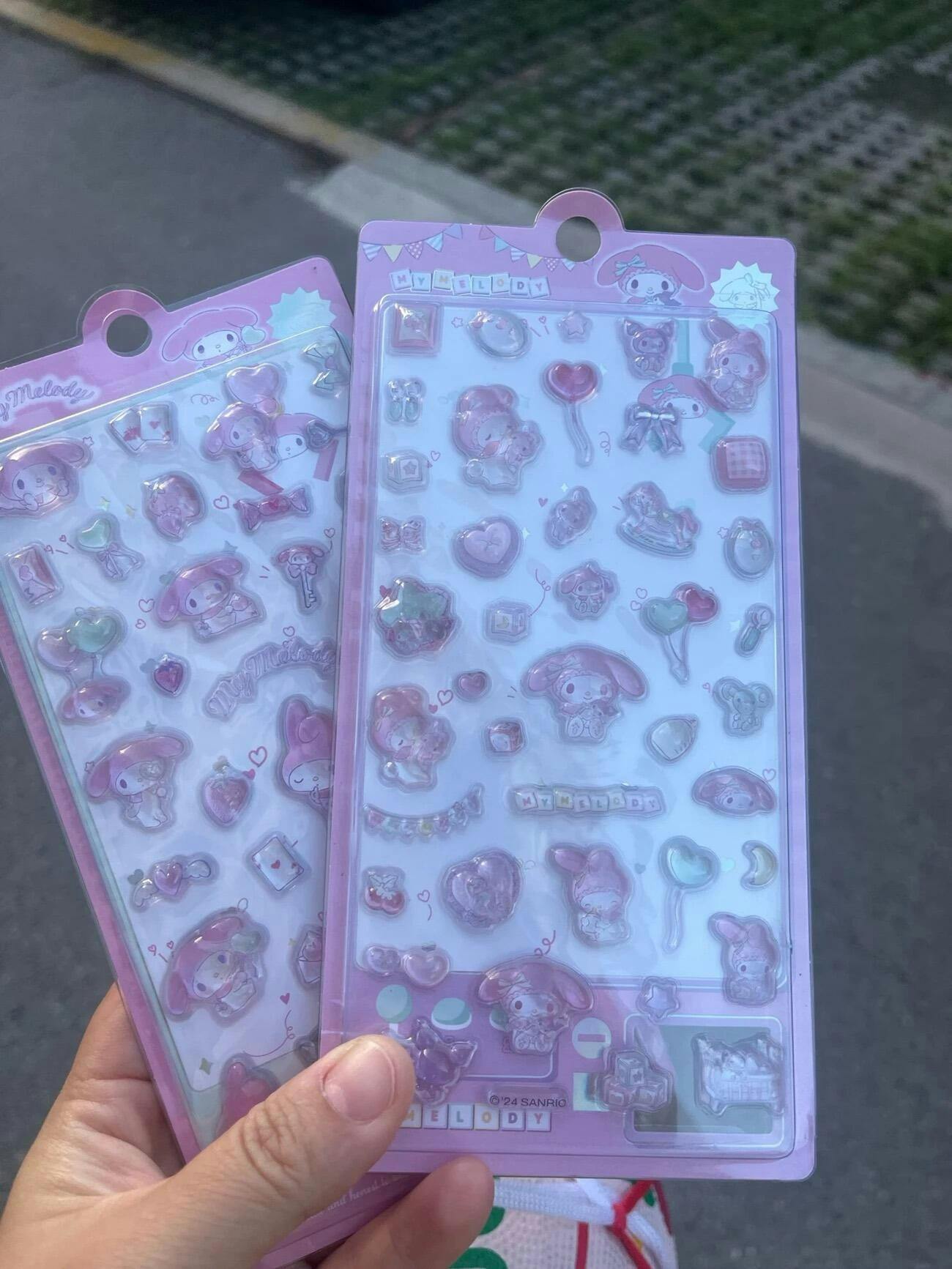 ✨ Style Highlights: Filled with various cute poses of My Melody, plus elements like hearts ❤️, bows 🎀, and dreamy trinkets. The pink - purple iridescent color scheme moves “My Melody’s sweetheart party” directly into the stickers! The 3D epoxy craft makes each sticker glossy and super three - dimensional, as if My Melody will jump out of the sticker to shower you with sweetness at any moment—too cute to not want to cover every girlish corner of your life with this “sweetheart bunny”~