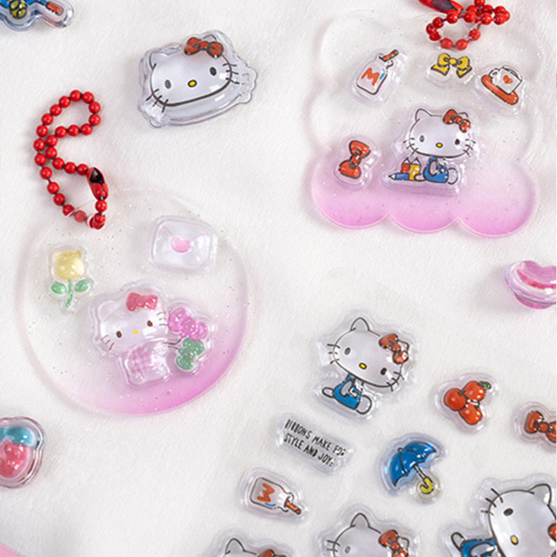 Style Highlights: Filled with various cute poses of Hello Kitty, plus cute trinkets like cherries 🍒, umbrellas ☂️, and tennis rackets. The pink - blue color scheme moves “Kitty’s energetic daily life” directly into the stickers! The 3D epoxy craft makes each sticker glossy and super three - dimensional, as if Hello Kitty will jump out of the sticker to say hi to you at any moment—too cute to not want to cover every corner of your life with this “energetic kitty”~