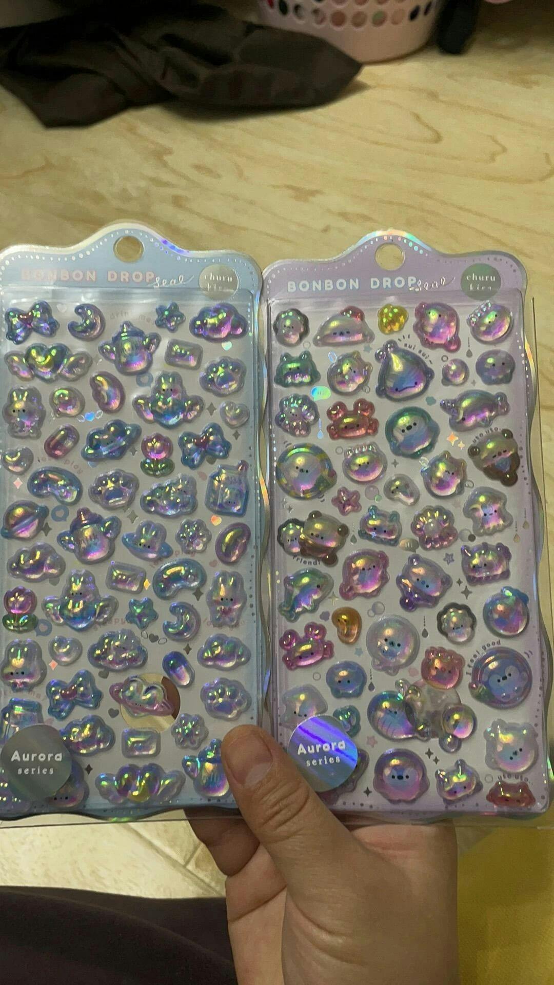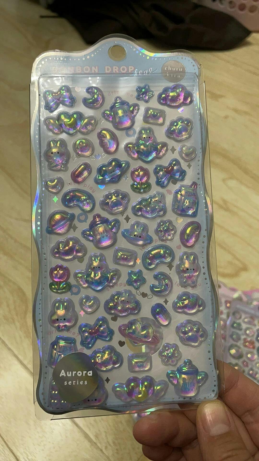 ✨ Style Highlights: Filled with iridescent cuties like bunnies 🐰, teddy bears 🧸, cat paws 🐾, and stars ⭐️. The translucent blue - purple iridescent color scheme is like blending the dreaminess of a summer sky into the stickers! The 3D epoxy craft makes each sticker glossy and super three - dimensional, as if these “iridescent little elves” will jump out of the sticker at any moment—too cute to not want to cover your journal with this “blue - tone fantasy paradise”~